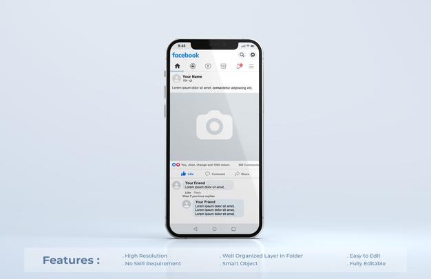 This free mockup comes with an editable profile picture, profile username, post image, likes, and comments section. Premium mobile phone screen mockup template.